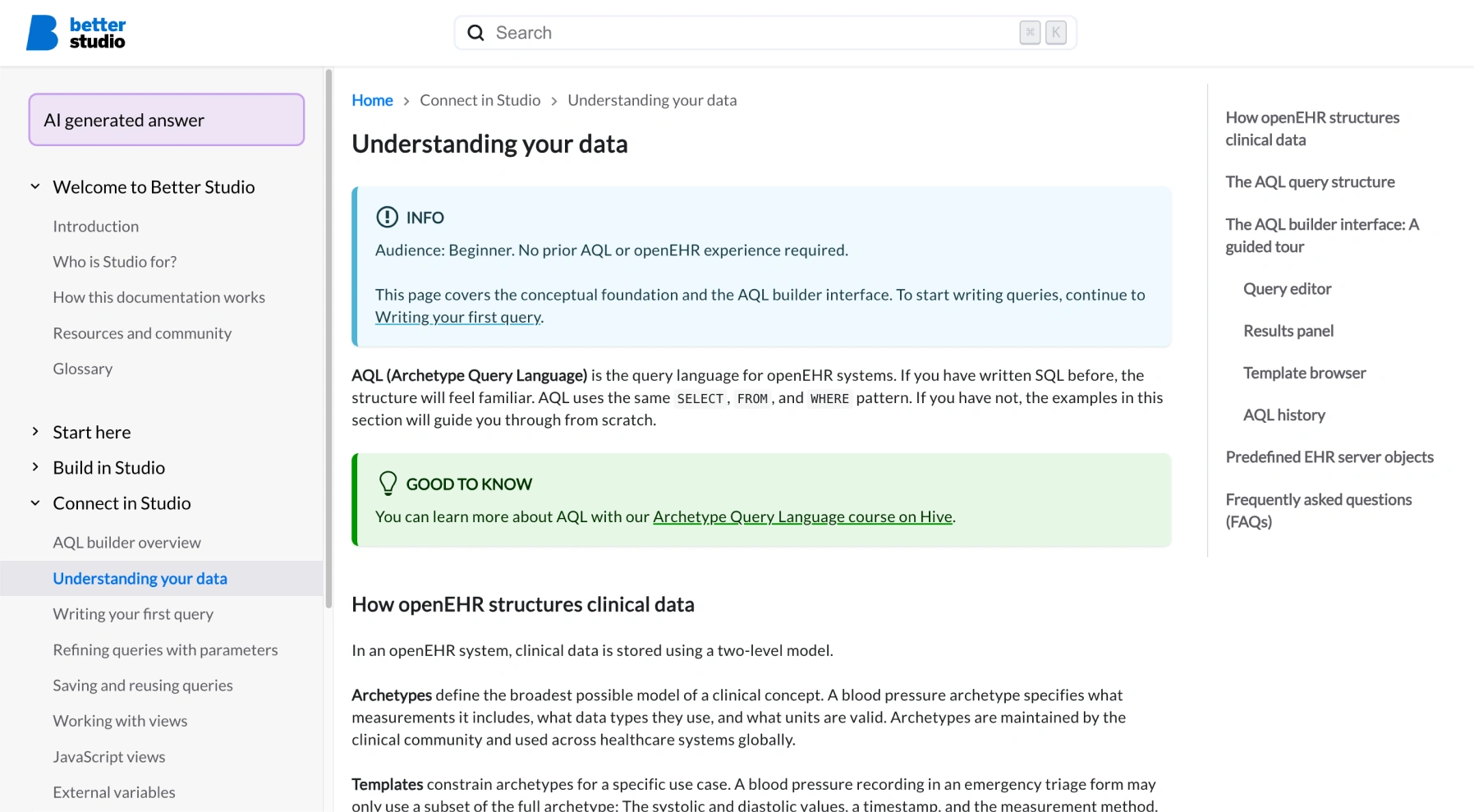 Good documentation is part of the product. When a developer is building their first form or configuring an AQL view for the first time, the quality of the documentation they can find directly affects how quickly they can get it done and whether they get it right.