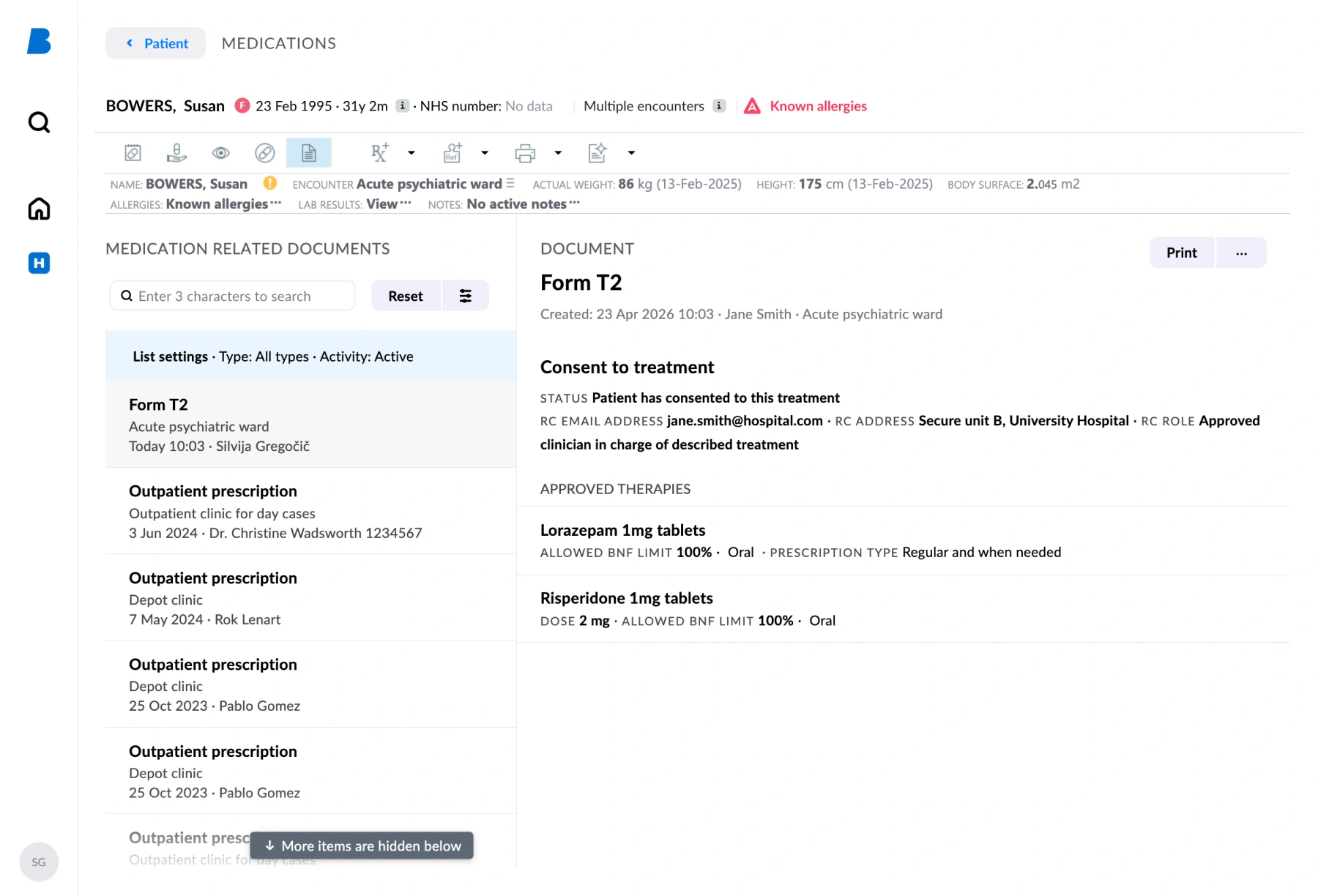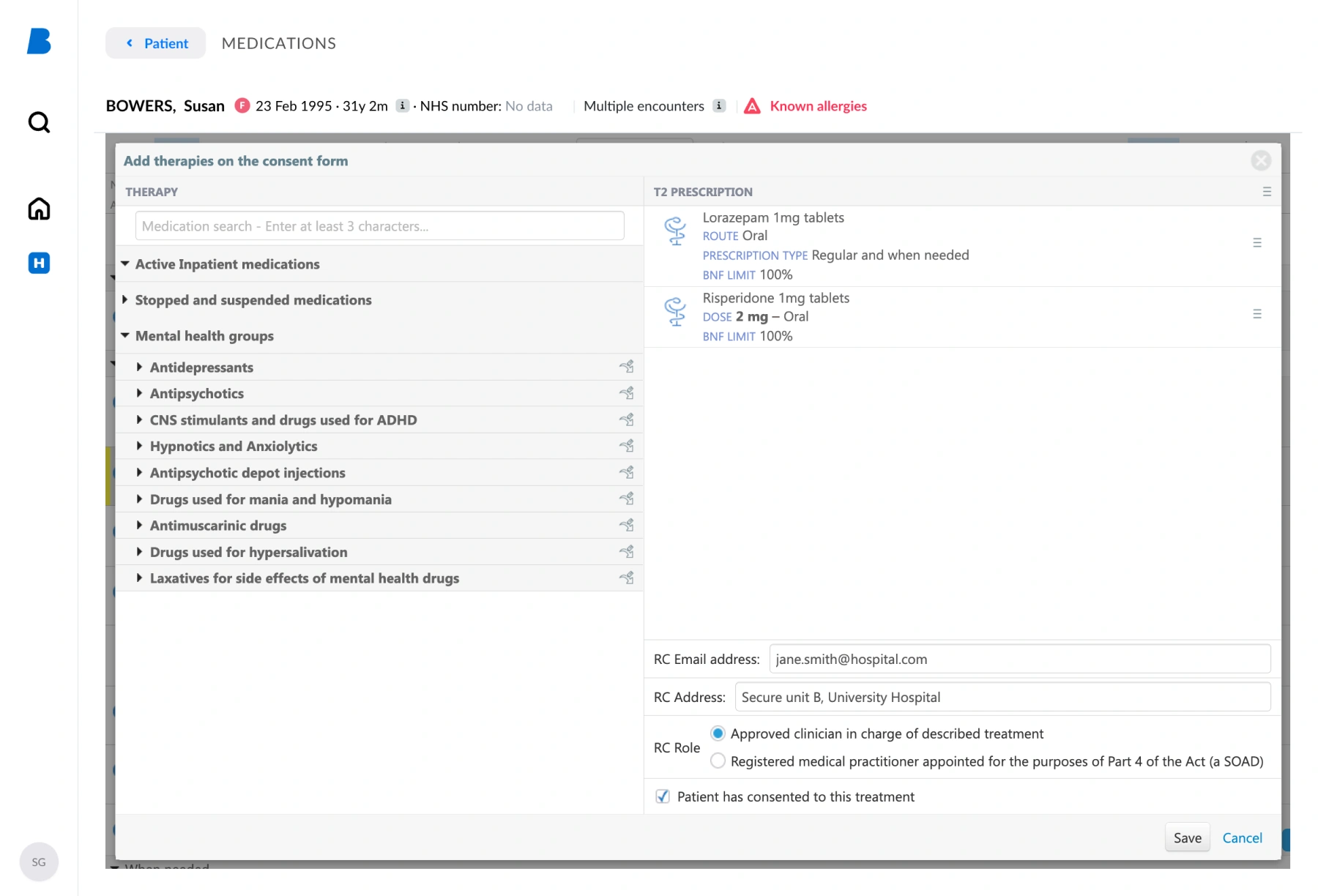Now that their digitalisation is complete, T2 forms are created within the Better Meds system by the responsible clinician. T3 forms, once received from the CQC, are transcribed into the system by the responsible clinician or a nominated junior doctor. Digital consent forms are now directly linked to prescriptions, providing real-time decision support directly at the point of prescribing. High-level override warnings flag prescribing outside authorised treatment, and the relevant T2 or T3 form is clearly identified on the MAR chart. Staff can complete audits, reporting, and essential checks more efficiently and accurately, directly reducing clinical risk.