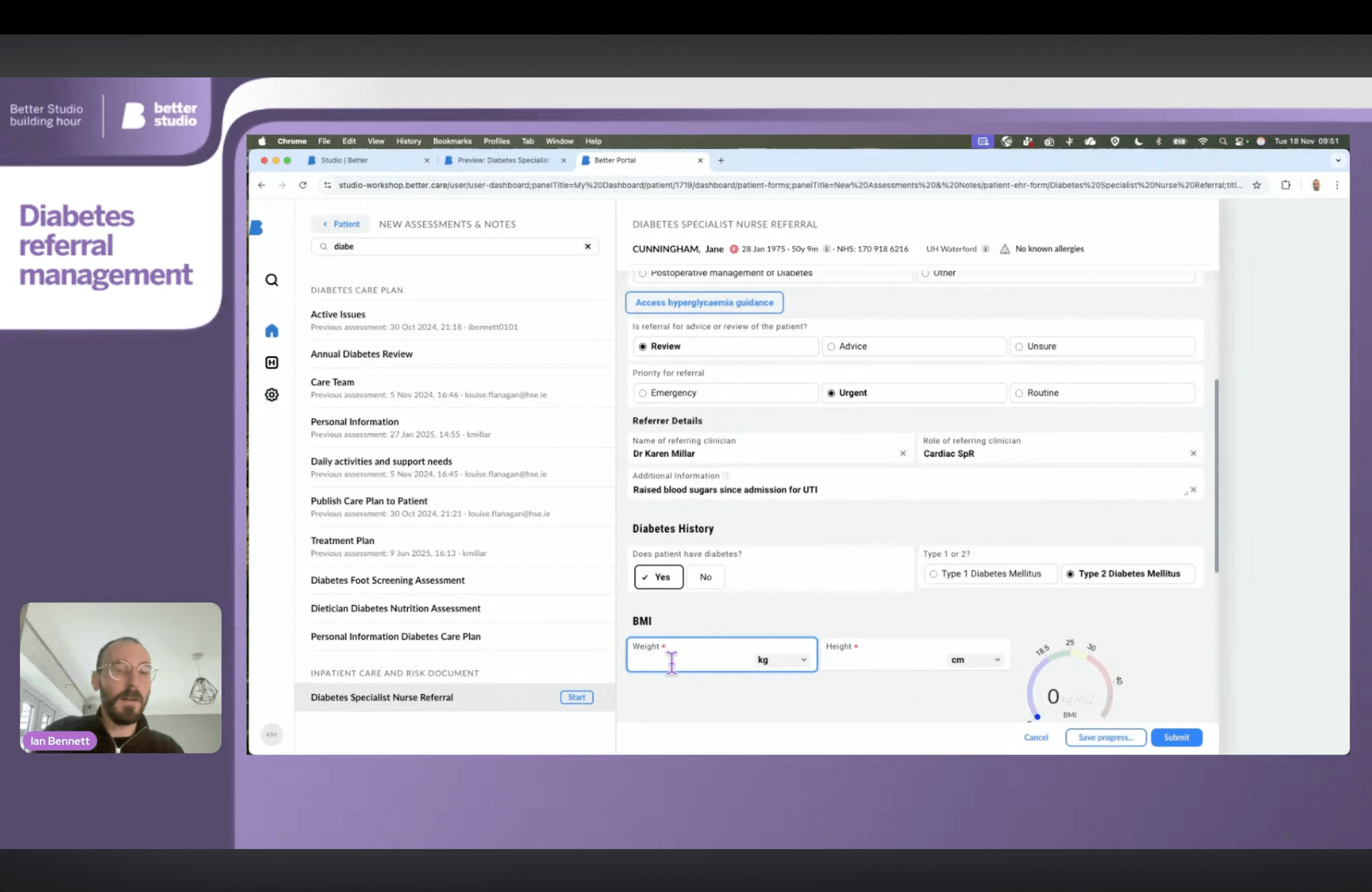 Our first webinar focused on diabetes referral management, a process that often involves several specialists and can easily become a bottleneck. With Better Studio, you can design workflows that minimise delays, improve communication, and ensure patients receive timely care.