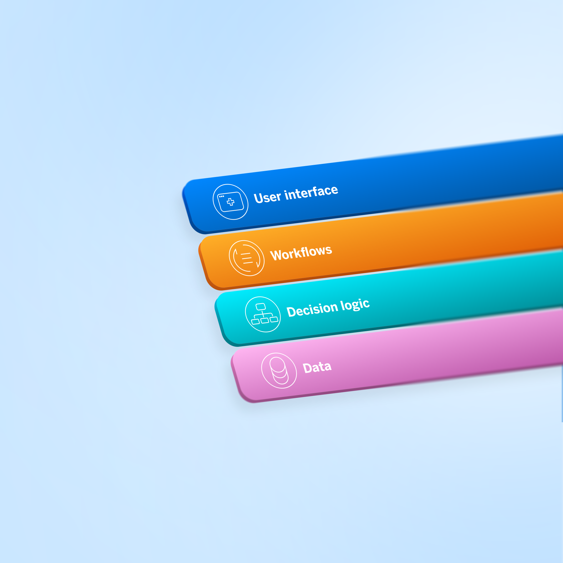 Traditional monolithic EHR architectures focus on stability and standardisation at the expense of agility. Along with innovation, cloud based deployment and integration of things, agility is the main differentiator when describing the requirements of application architecture for the Postmodern EHR. Achieving agility is impossible for the vast majority of healthcare applications today as they are an inseparable mix of code for user interface, decision logic, workflows and data definitions. New architectures promote agility and reuse by turning the applications inside out and layering the four types of programming into portals, rule engines, process engines and XML data. Let’s look at some examples, layer by layer: